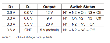 D+ をプルダウンすると直ちにリセットして Quick Charge 2.0 のステートを抜けるようなので、各状態遷移の間は D+ を0Vにしないようにする必要がある。