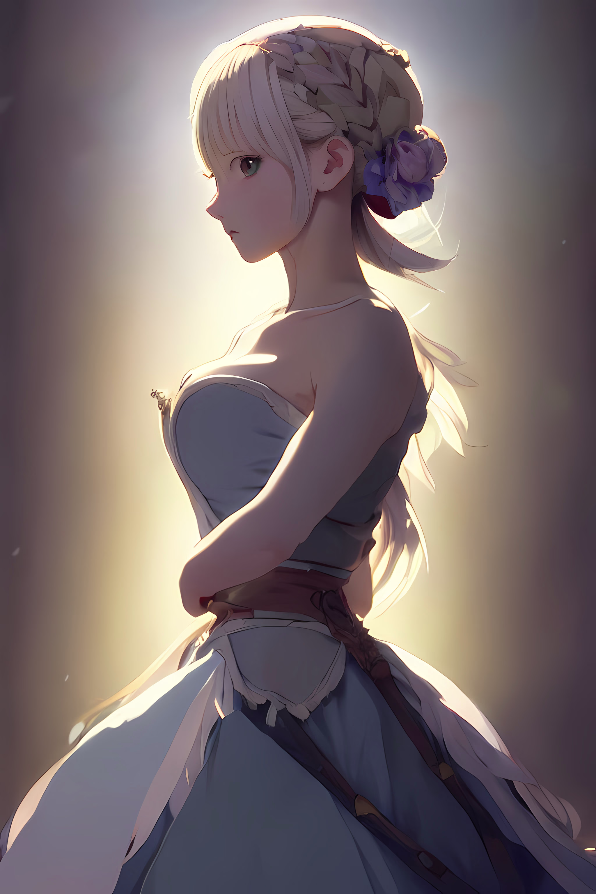 顔は顔で生成すると割り切って考えると、服をちゃんと指定するほうが楽しい。frill trim top は希望通りにいきやすい。corset や bodice もいいけど、胸元が開く傾向が強い。