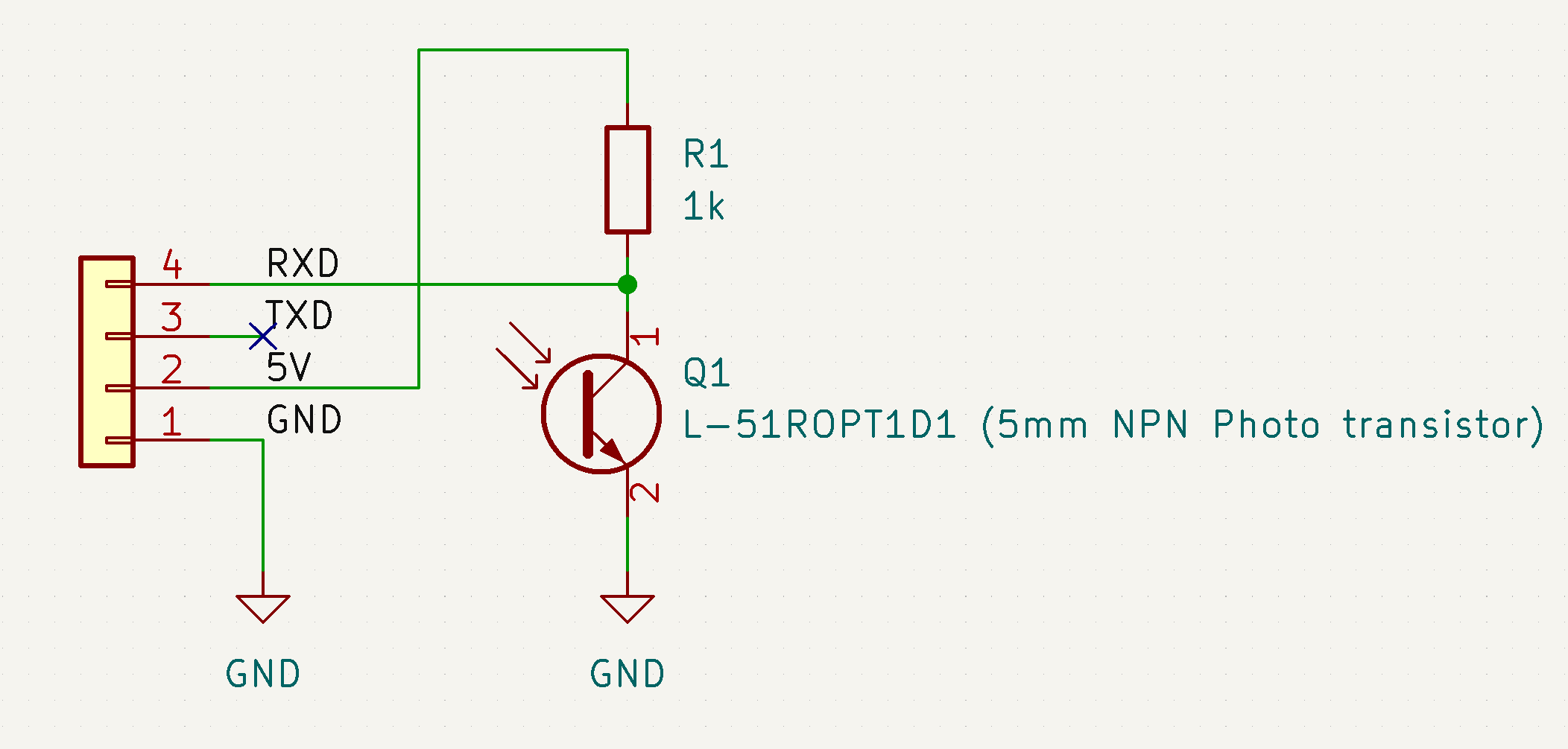 Thingiverse の方法 (RX と GND に直接フォトトランジスタをつける) だと、FT234X ではうまくいかない。オシロで見た感じ立ちあがりが遅すぎたので、RX の内部抵抗が高いようだ。