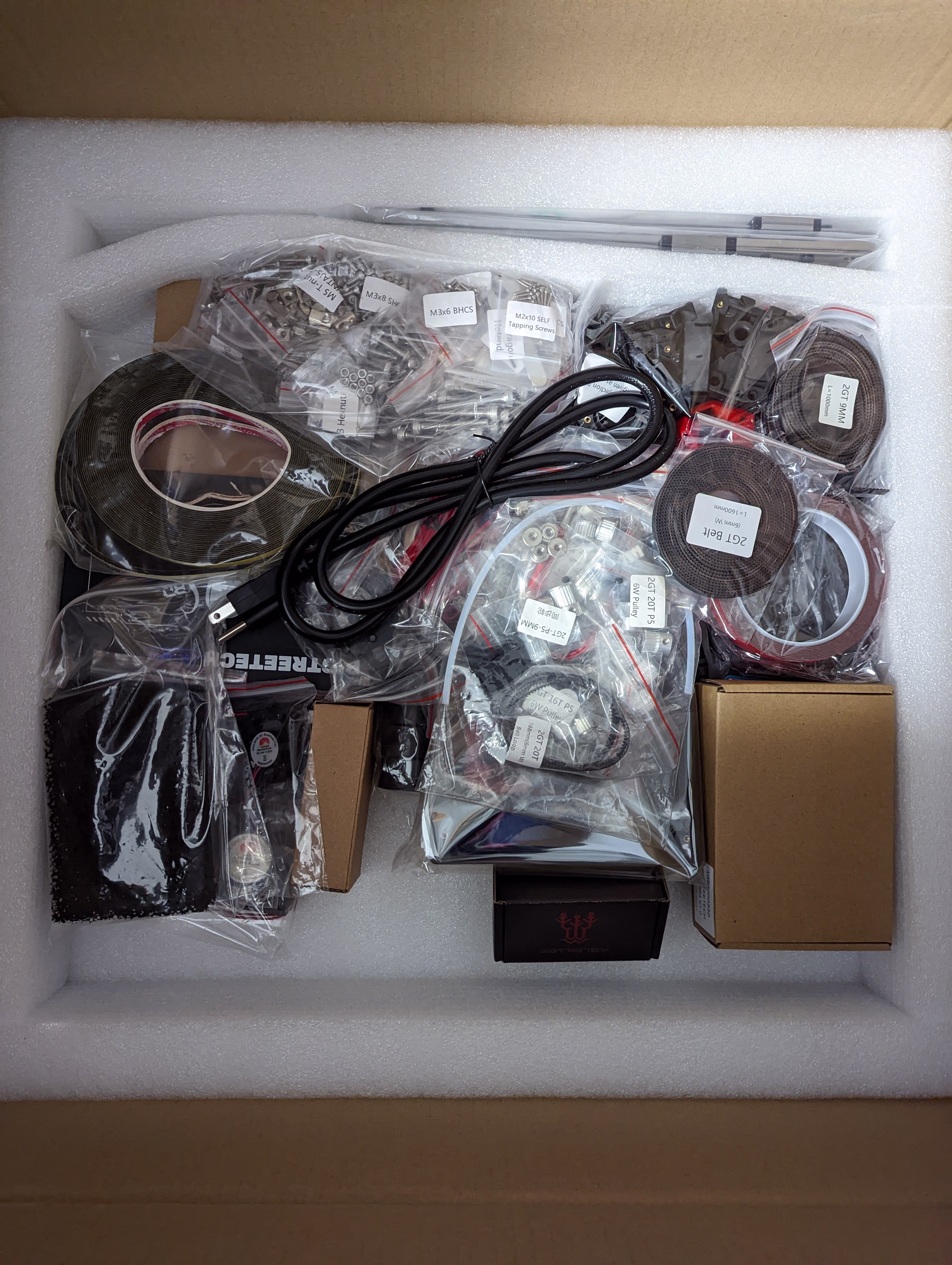 出力するパーツ数は結構多い (Prusa が 3D プリント部品を最小限にしているのと対照的)し、大きいものが多い。動作に必須な部品だけでも3~4日かかる。全部プリントするには一週間以上かかると思ったほうが良い。パーツを注文しても全部届くまで1ヶ月ぐらいかかるだろうからのんびりやって良い。