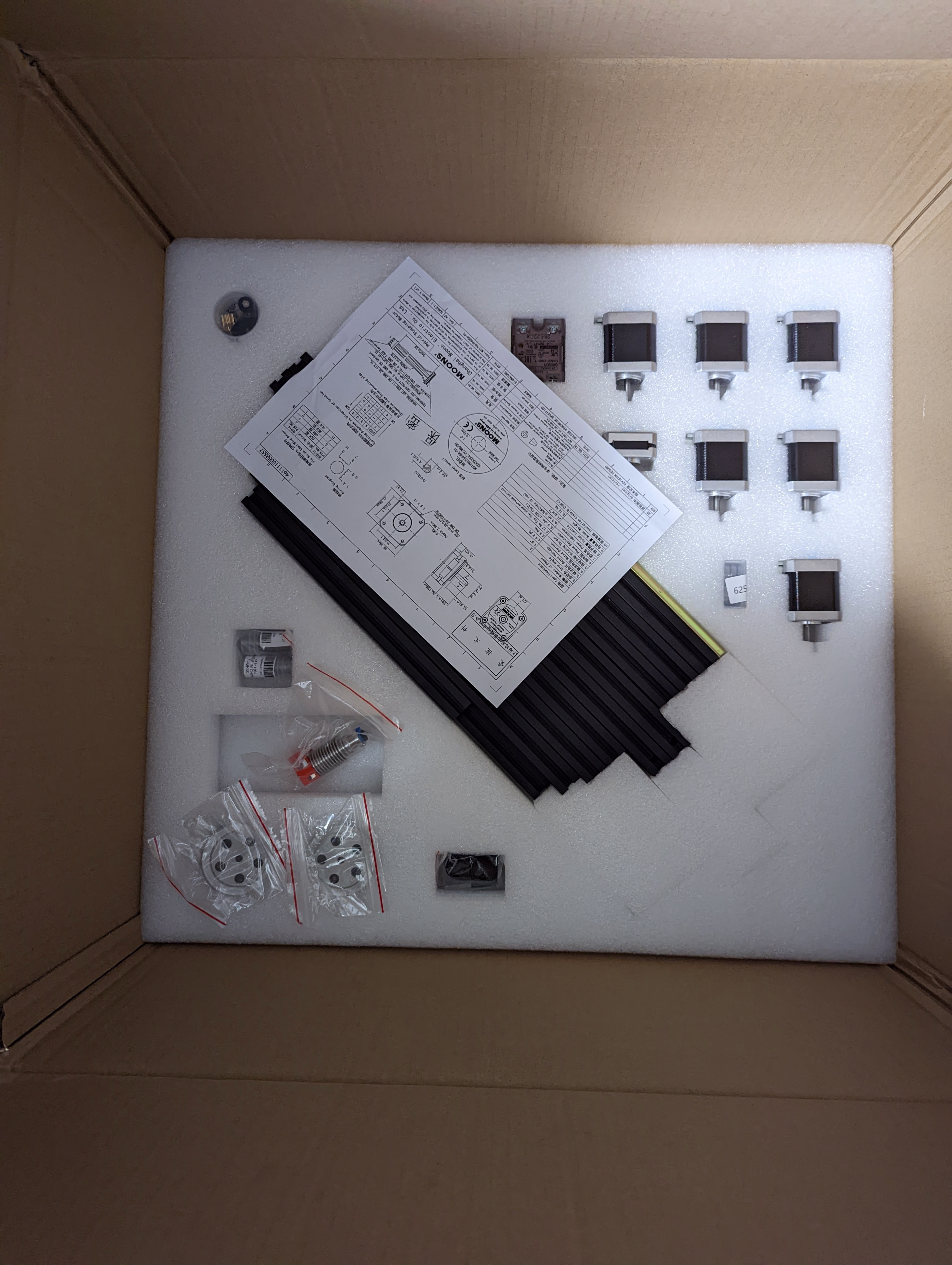 マニュアルがよくできていて迷うところはほぼない。Gantry の組み立てまわりはマニュアルだけだと完璧にできないと思うので YouTube とかを見るべき。