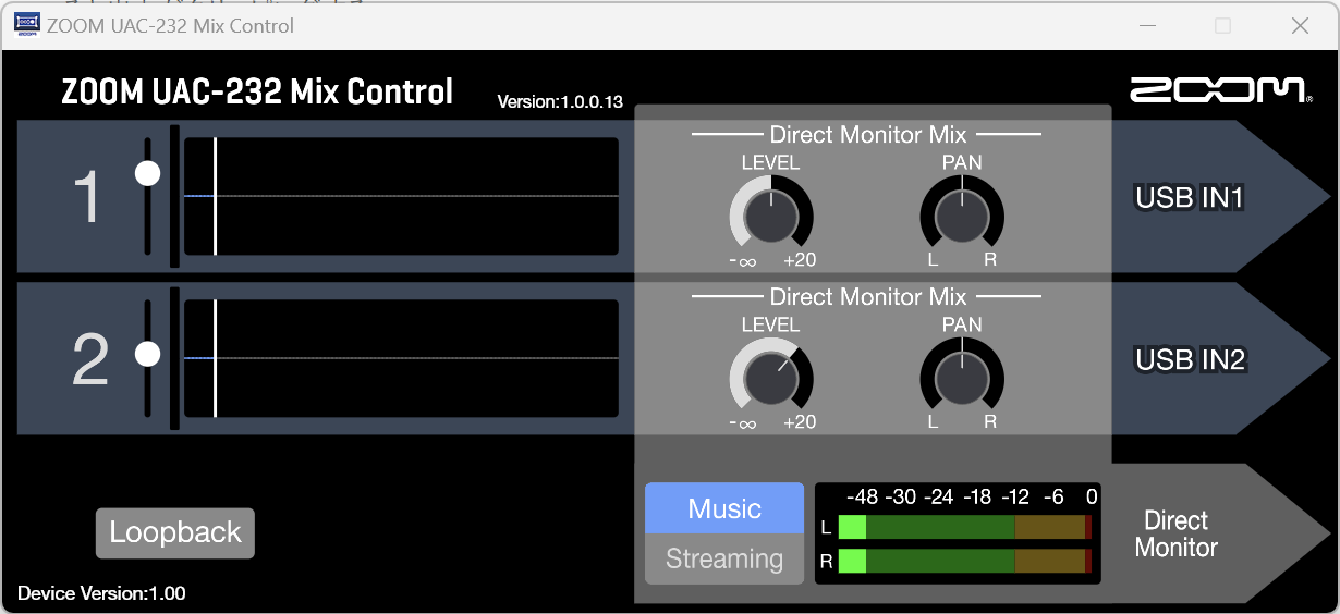2. ミックスレベル (デジタル) → Mix Control の右側のやつ。実質的には入力レベルとやってることは変わらないが、Mic Control で見れる波形に影響しない。USB 入力に関係するのはここまで