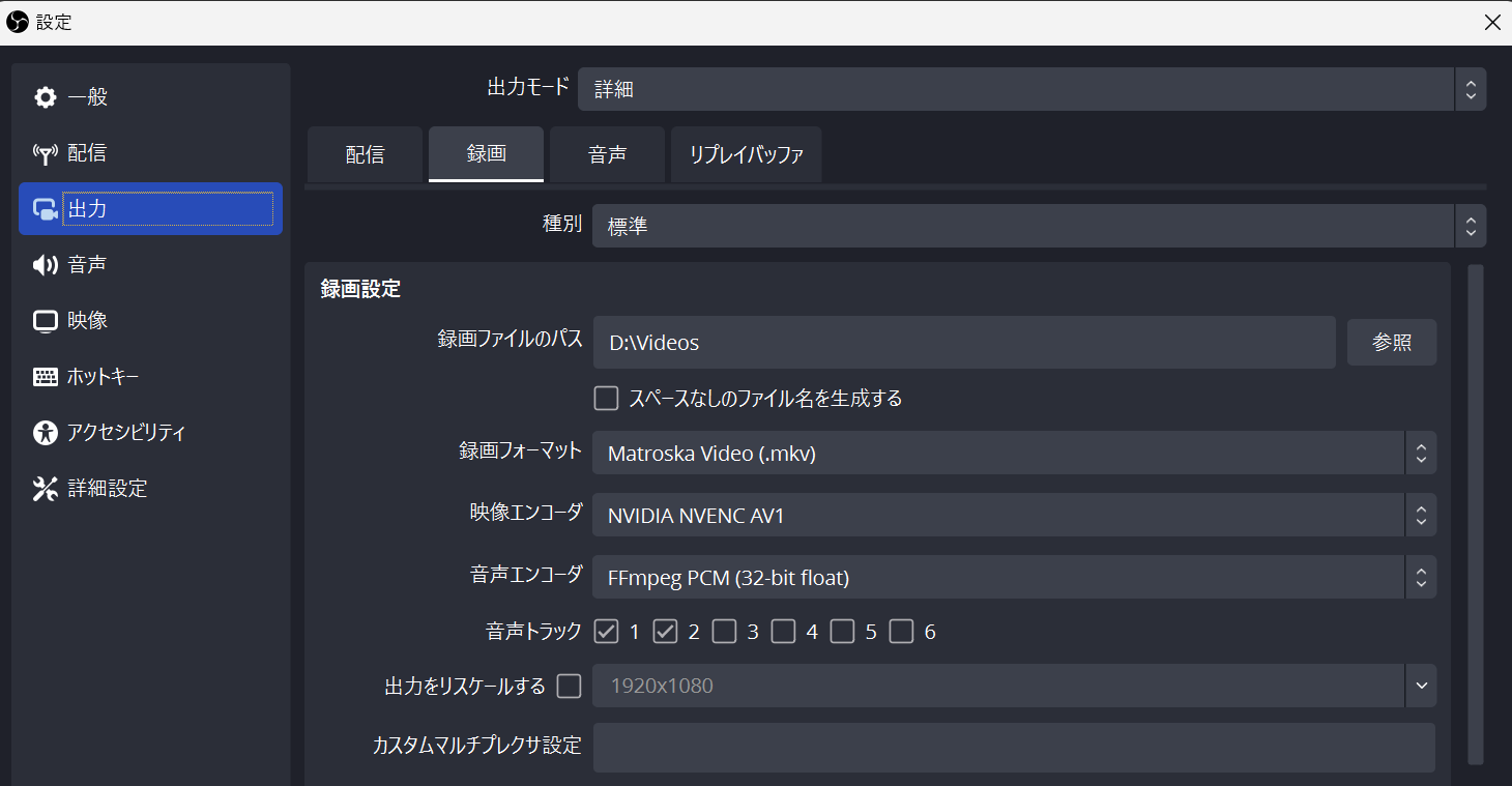 - 録画フォーマット .mkv