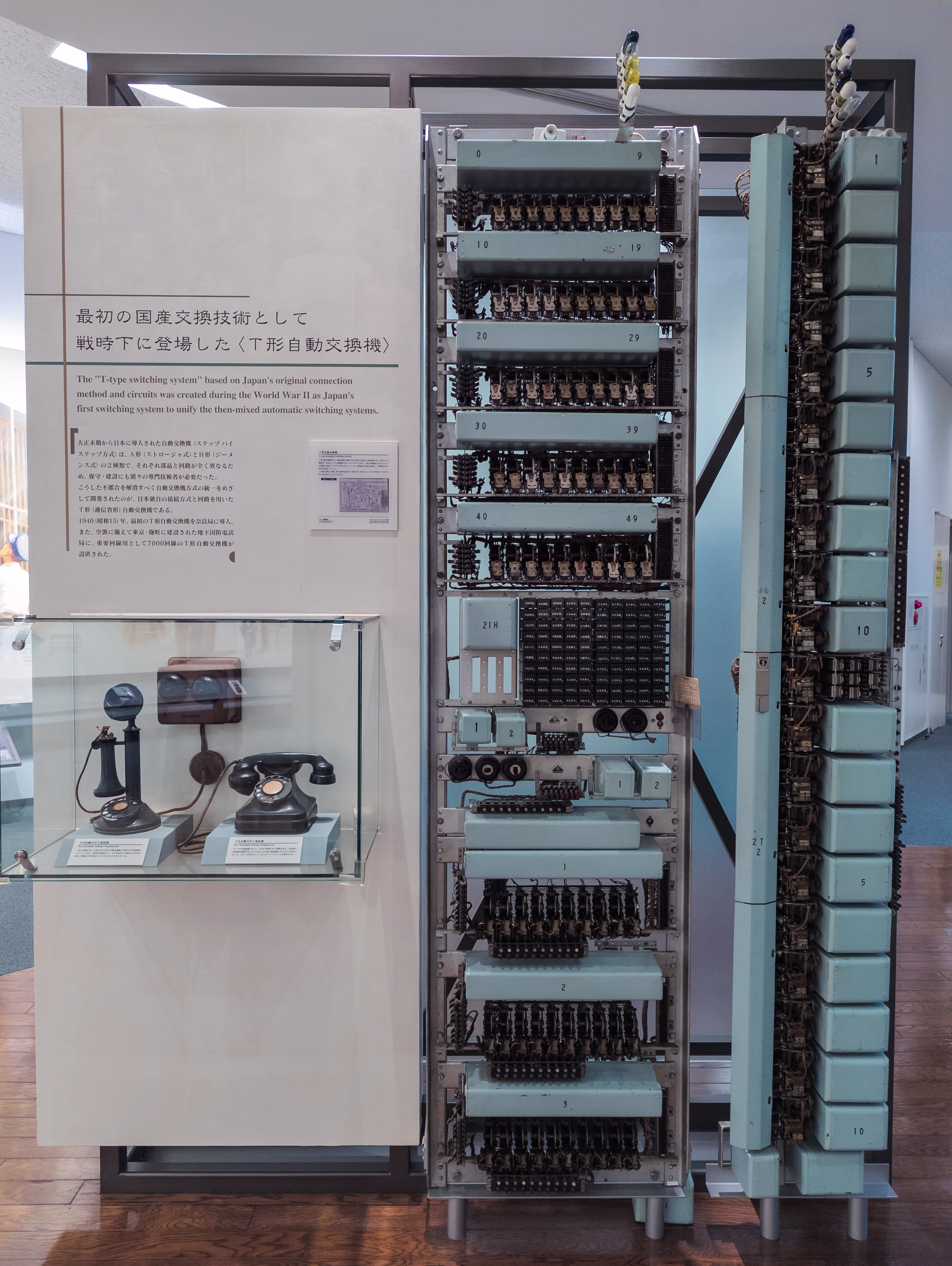 手動電話交換機 自動電話交換機やら、局の建築とか、通信用トンネルとか、鉄塔の方式とか、光ファイバーの製法とかとにかくいろいろある。