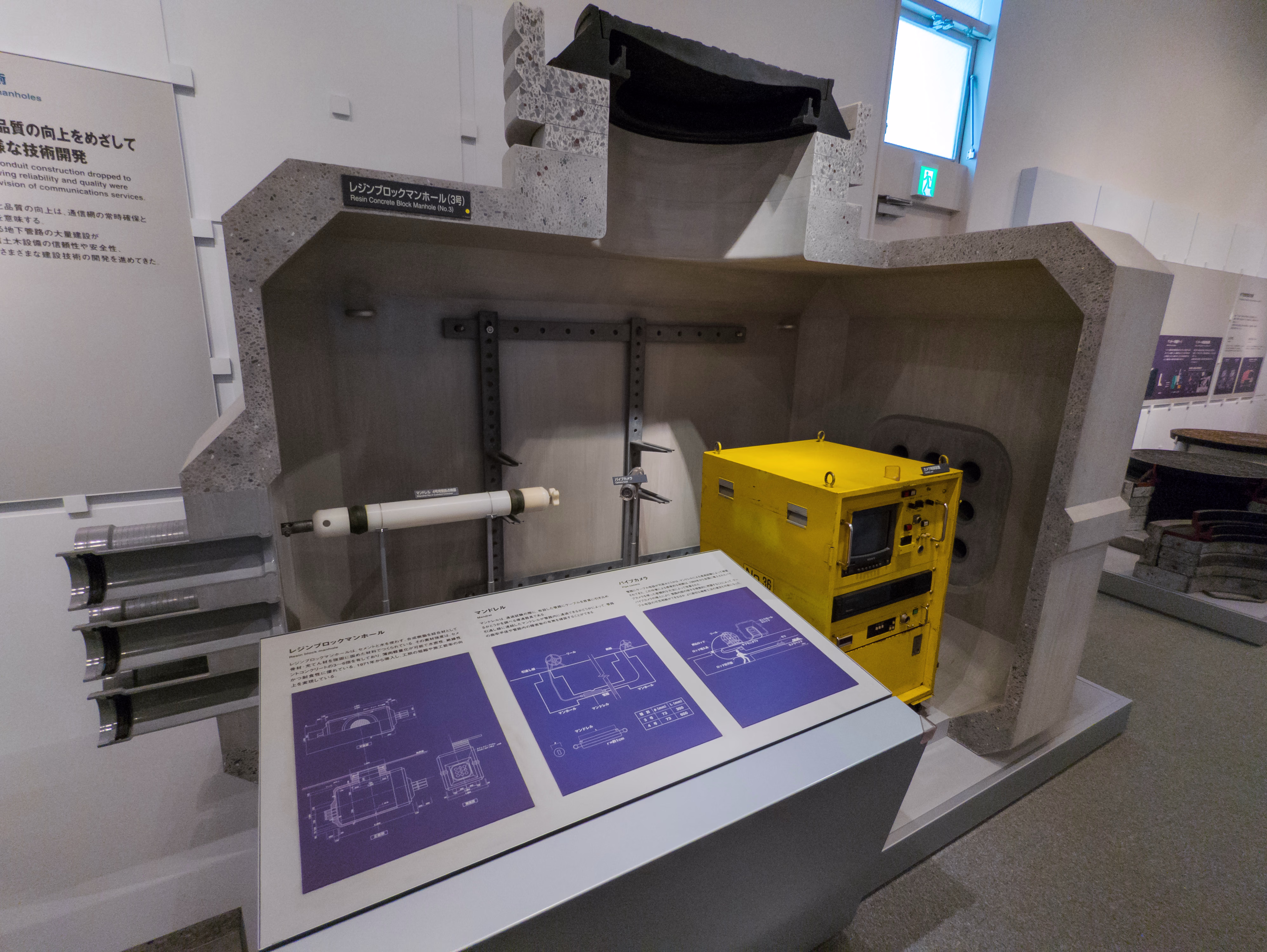 NTT局の建物構造とか鉄塔の建築方法もそうだけど、マンホールの構造の展示があって珍しい。